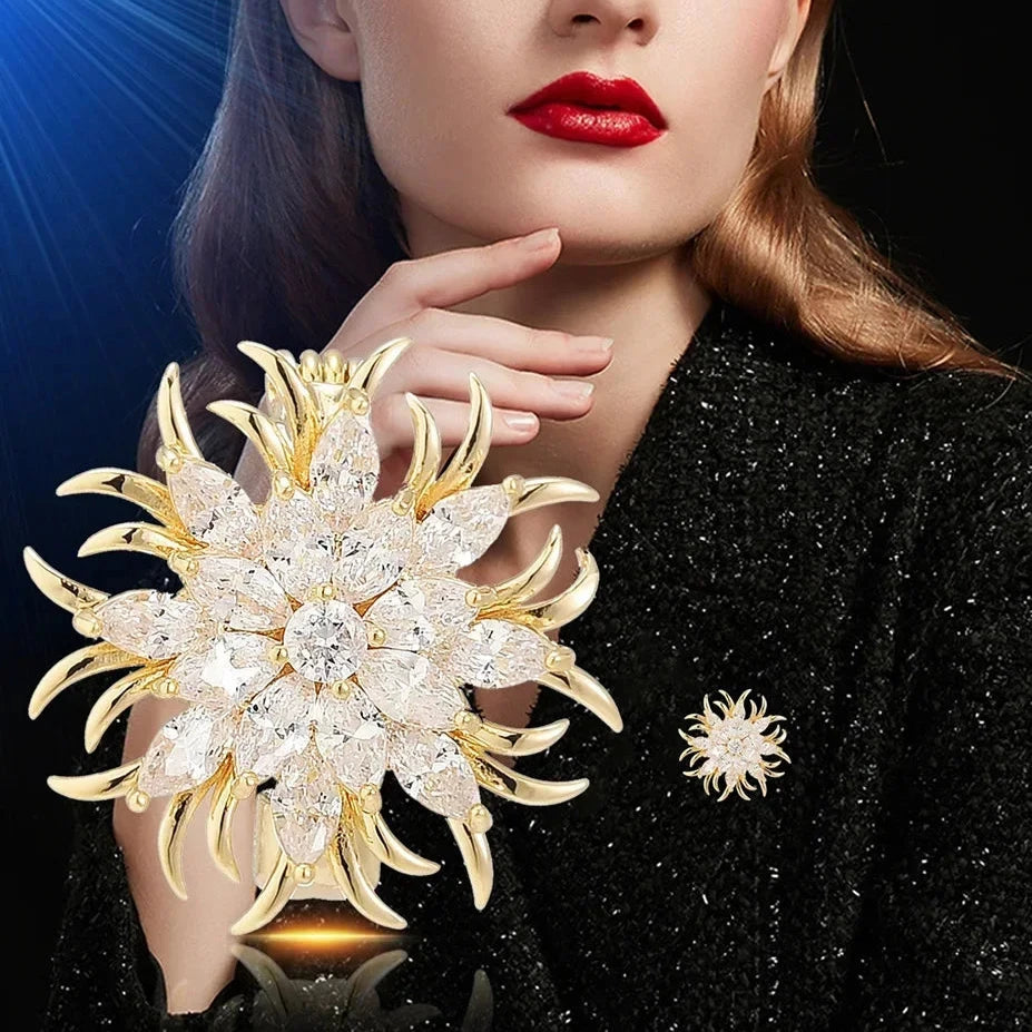 Add a touch of sophistication to your wardrobe with our Elegant Rhinestone Snowflake Flower Brooch.
